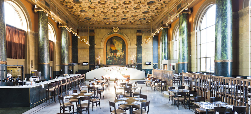 There is no shortage of fabulous places to get all dolled up for. I could give you a list a mile long, but for now I’m going to recommend Crop Bistro & Bar. The dining area of Crop is massive, formerly the United Bank and Trust Building, and features beautiful art and gorgeous ceilings. Plus the food is fabulous! Feel free to check out the West Side Market, which is right across the street, for some fresh food!